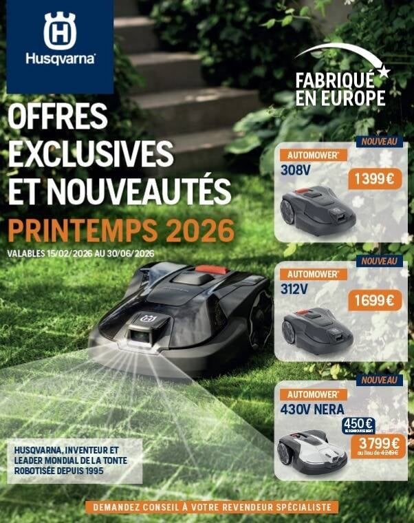 Offre Exclusives et nouveautés printemps HUSQVARNA valables du 15 février au 30 juin 2026
